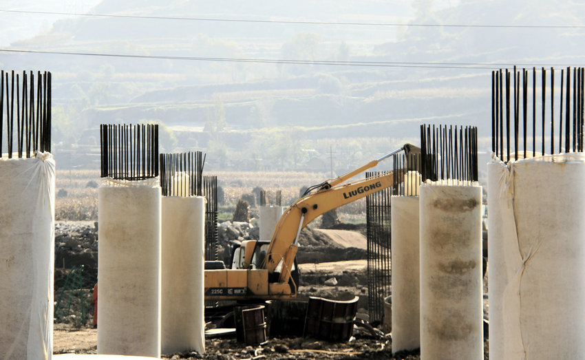 ▲總長度超過160米的后川河大橋已完成部分橋墩澆筑