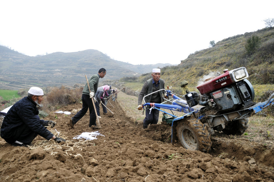 在和馬君的聊天中得知,1984年,剛滿19歲的他從定西衛(wèi)校畢業(yè)回到家鄉(xiāng)當(dāng)了一名鄉(xiāng)村醫(yī)生。由于他醫(yī)術(shù)精湛,給村民看病時(shí)總是不厭其煩,每逢刮風(fēng)下雨,一旦群眾有看病需求,他總是風(fēng)雨無阻去患者家中醫(yī)治。在去年村委換屆時(shí),他被群眾推選為村支書,干什么呢?如何帶領(lǐng)蒲家村民發(fā)家致富奔小康,一直是他和村班子成員每天都要思考的問題。每當(dāng)他坐在山坡上望著年復(fù)一年撂荒的坡地時(shí),心里就有一種說不出的滋味。由于他是個(gè)鄉(xiāng)村醫(yī)生,有時(shí)會接觸一些藥販子,說種藥材可以發(fā)藥財(cái),于是他和村班子成員商量后,把發(fā)展中藥材種植業(yè)的想法向鄉(xiāng)領(lǐng)導(dǎo)匯報(bào)后,鄉(xiāng)領(lǐng)導(dǎo)當(dāng)場拍板表示大力支持。說干就干,他和村主任馬曉偉先帶頭試種,試種成功后打算讓村民自己種植。在種植黨參的過程中,得到了縣上有關(guān)領(lǐng)導(dǎo)的鼓勵(lì)和縣農(nóng)業(yè)局技術(shù)人員的指導(dǎo)。他說,萬事開頭難,一旦局面打開了,信心就更足了。