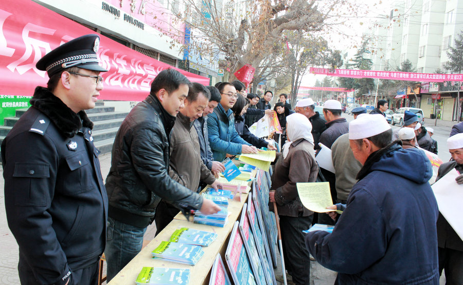 為深入貫徹十八屆四中全會(huì)精神,增強(qiáng)群眾法治意識(shí)和法治觀念,12月3日,張家川回族自治縣利用群眾趕集日開(kāi)展“弘揚(yáng)憲法精神,建設(shè)法治中國(guó)”主題法制宣傳活動(dòng)?h委常委、政法委書記何永東參加宣傳活動(dòng)。