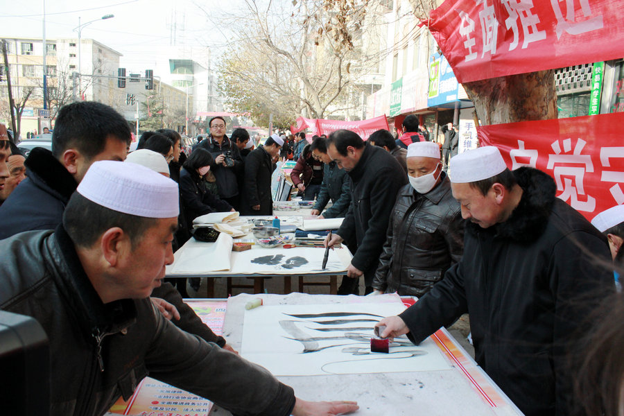 今年12月4日,是我國(guó)首個(gè)憲法日暨全國(guó)法制宣傳日。張家川回族自治縣高度重視,精心籌備,積極組織全縣政法、公、檢、法、司及所有涉法部門共計(jì)30多個(gè)部門和單位,在縣人民路什字開(kāi)展宣傳活動(dòng)。此次活動(dòng)通過(guò)設(shè)立咨詢臺(tái)、懸掛橫幅、發(fā)放宣傳資料、播放音響資料和led屏宣傳車演示法治建設(shè)成績(jī)等多種形式,向過(guò)往群眾大力宣傳反對(duì)邪教、文物保護(hù)、勞動(dòng)就業(yè)、社會(huì)保障、醫(yī)療衛(wèi)生、社會(huì)治安、公共安全、維護(hù)社會(huì)穩(wěn)定、民族團(tuán)結(jié)等與人民群眾生產(chǎn)生活息息相關(guān)的法律法規(guī)。同時(shí),為擴(kuò)大宣傳效果,張家川縣立足實(shí)際,結(jié)合法制宣傳主題,邀請(qǐng)縣內(nèi)書畫家,現(xiàn)場(chǎng)為廣大群眾揮毫潑墨,受到了群眾的熱烈歡迎。