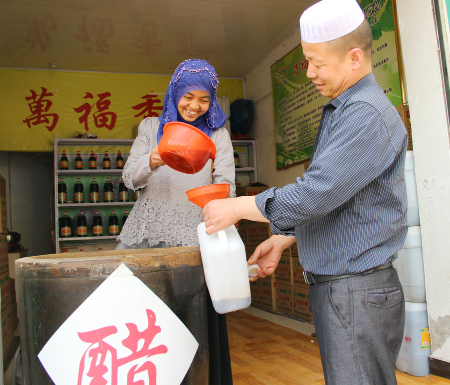 5月8日天水市第三屆清真食品展在龍城廣場舉辦,在那次展會上,李萬福帶上了他的‘秘密武器’。他口中的“秘密武器”就是讓顧客免費(fèi)品嘗他的頭等醋,顧客一嘗他的醋,就知道我們的醋是用土法釀造,味道又不錯(cuò),就會買幾瓶。”李萬福表示還將會把醋帶出張家川,參加全國性的各種展會。