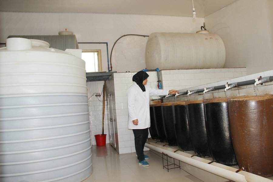 招待完顧客后,李萬福硬是要開車?yán)P者到他位于龍山鎮(zhèn)的萬福香醋廠看看。剛進(jìn)他的香醋廠,一股醋香撲鼻而來。小院里干凈整潔,一口口大缸一字排開擺放在屋內(nèi),泛著誘人香氣的香醋,一個(gè)個(gè)身著工作服的工人正在進(jìn)行產(chǎn)品包裝…