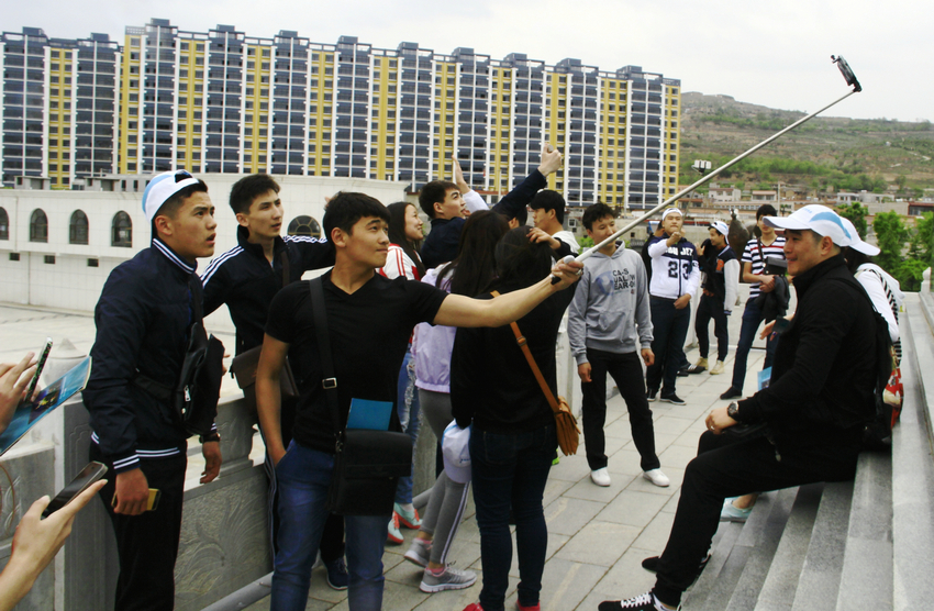 來自吉爾吉斯斯坦、哈薩克斯坦等中亞國家的東干族留學(xué)生在張家川回鄉(xiāng)風(fēng)情園自拍