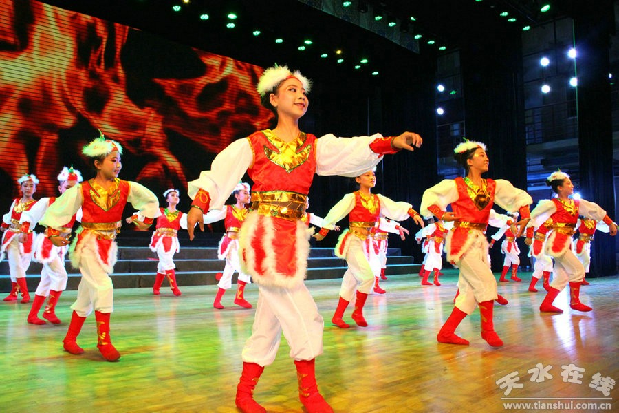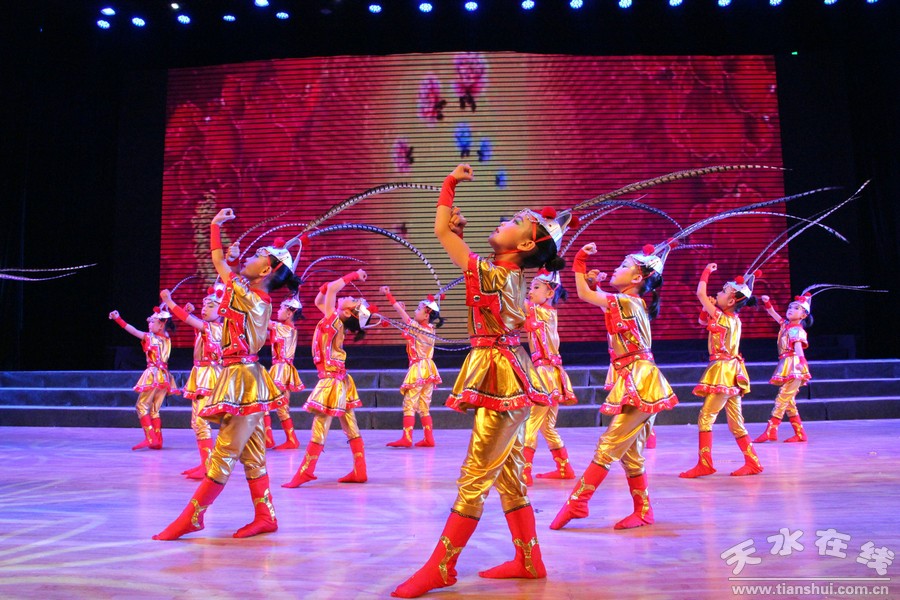 “在小小的搖籃里,媽媽教我認(rèn)識你,在溫暖的教室里,老師教我描繪你,在電視里看到你,我每次都向你敬禮,啊 五星紅旗,我愛你!”《五星紅旗•我愛你》是適宜兒童傳唱的一首愛國歌曲,歌曲描繪了孩子在成長過程當(dāng)中每一次見到五星紅旗時的不同感受,漸漸地在心中凝聚起祖國的形象。龍山西小的演唱者用她最美的心聲抒發(fā)著對祖國最清純、最美好的情懷、最真切的心聲。舞蹈《我們剛上一年級》、《紅孩子》動感的音樂、喜悅的笑臉,使孩子們沉浸于歡樂的海洋中,豐富多彩的節(jié)目,也讓觀眾大飽眼福,小演員們可愛的模樣,讓觀眾看到了他們身上洋溢著燦爛的童真、活力與希望。隨后在雷鳴般的掌聲中,青少年校外活動中心編排的舞蹈《沁園春?雪》亮相舞臺,舞蹈通過小朋友們的精彩表演,再配有大型LED屏幕,深深懷念偉大領(lǐng)袖毛主席,讓愛國情懷和未成年人思想道德建設(shè)深深扎根張家川縣,詞作中詩情畫意的唯美展示,在簡約的旋律之間,讓現(xiàn)場所有體會到詩人和表演者對美好祖國的由衷贊美。