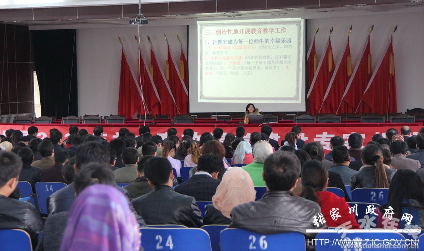 為進一步借鑒外地先進課改經(jīng)驗,提升張家川縣廣大教育工作者教育理念,營造良好的高效課堂改革氛圍,11月20日,張家川縣教育體育局邀請北京師范大學(xué)培訓(xùn)學(xué)院講師團成員、全國優(yōu)秀班主任、全國勞動模范、區(qū)域課改帶頭人李麗,中國教育學(xué)會顧問、北京大學(xué)教授、中學(xué)高級教師陳斌,全國優(yōu)秀教師、著名英語教育專家趙剛?cè)藖砦铱h舉行2015年高考備考暨高效課堂教學(xué)專題報告會,縣政府副縣長蘇華、縣教體局全體干部和來自全縣不同學(xué)段學(xué)校的1000余名校長、教師聆聽了講座。