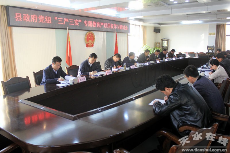 12月3日,張家川回族自治縣政府黨組書記、縣長馬中奇主持召開“三嚴三實”專題教育嚴以用權(quán)學(xué)習研討會?h政府在家黨組成員,縣直部門在職副縣級干部及縣政府辦干部參加會議。