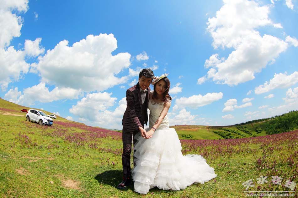 (圖為張家川縣金巴黎婚紗影樓正在這里為一對(duì)新人拍攝婚紗照。)