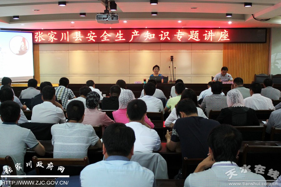 7月8日,為進(jìn)一步宣傳貫徹新《安全生產(chǎn)法》和《甘肅省安全生產(chǎn)條例》,不斷強化全縣安全生產(chǎn)宣傳教育工作,掀起2016年全縣安全生產(chǎn)宣傳教育培訓(xùn)活動新高潮,張家川回族自治縣邀請四川省安全生產(chǎn)科學(xué)研究院高級工程師、四川省安全生產(chǎn)專家范惠玲教授作了以“安全生產(chǎn)責(zé)任主體的主體責(zé)任落實”為主要內(nèi)容的安全生產(chǎn)專題講座?h安委會成員單位主要負(fù)責(zé)人,15個鄉(xiāng)鎮(zhèn)鄉(xiāng)鎮(zhèn)長、安監(jiān)站全體成員、各企業(yè)負(fù)責(zé)人、安全管理人員共計120余人聆聽了講座。副縣長蘇華主持講座。