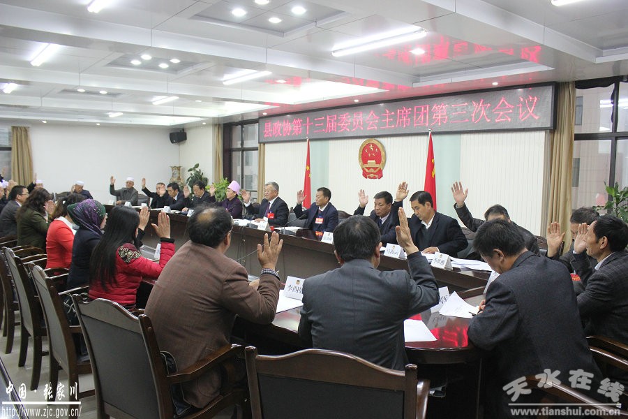 10月23日下午,中國(guó)人民政治協(xié)商會(huì)議張家川回族自治縣第十三屆委員會(huì)第一次會(huì)議召開主席團(tuán)第三次會(huì)議。會(huì)議應(yīng)到主席團(tuán)成員30名,實(shí)到26名,符合《政協(xié)章程》規(guī)定。關(guān)春生主持會(huì)議。