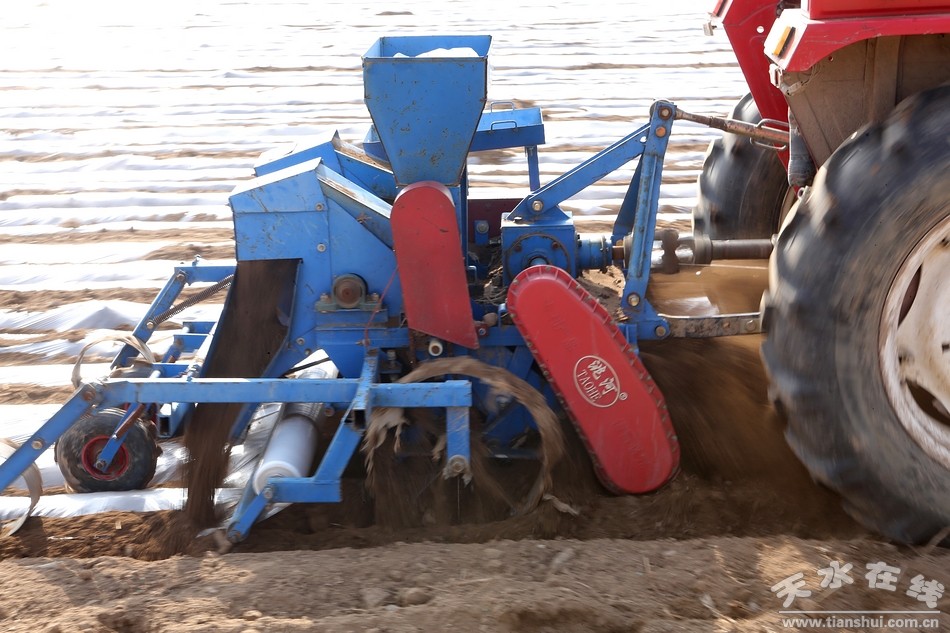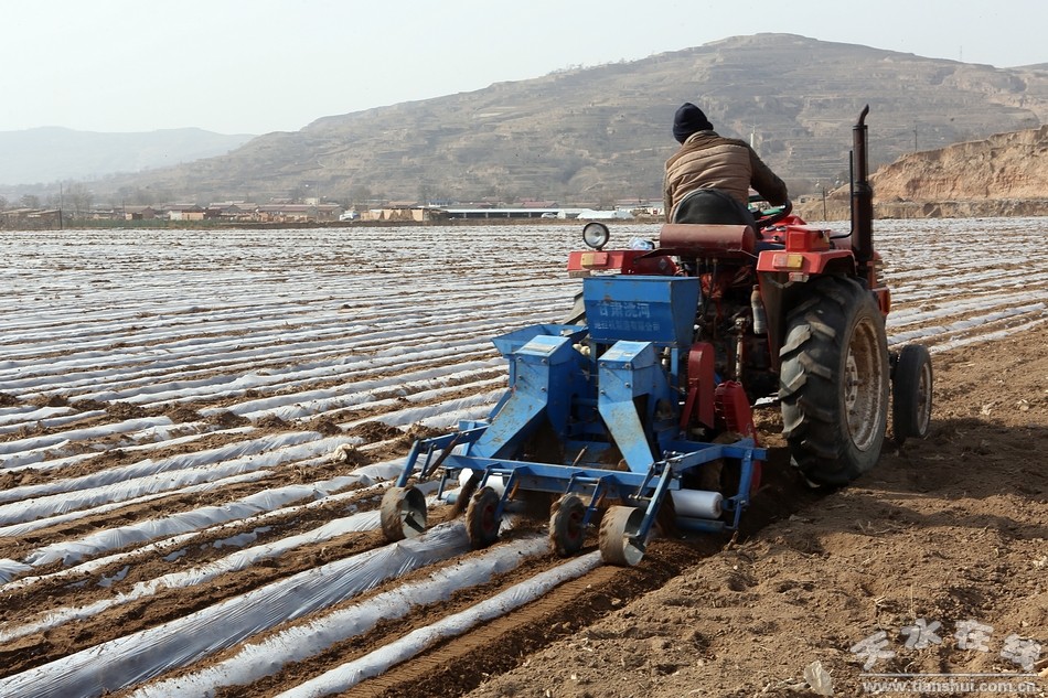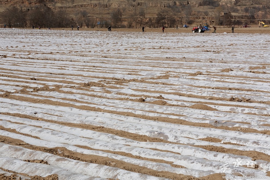 (張家川縣龍山鎮(zhèn)疙瘩川全膜雙壟溝播玉米縣級(jí)示范點(diǎn)春耕現(xiàn)場(chǎng))