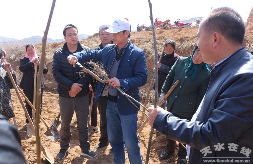 為保證苗木成活率,確保項目順利實施,胡川鎮(zhèn)邀請縣林業(yè)局技術(shù)人員在祁溝和蒲家兩村進行現(xiàn)場指導(dǎo)和技術(shù)培訓(xùn)。培訓(xùn)現(xiàn)場,縣林業(yè)局技術(shù)人員詳細講解了核桃樹苗的栽植注意事項,并親自栽植示范,從假植、挖坑、回填、栽植到最后的定干,每一個環(huán)節(jié)注意事項都做了詳細講解。