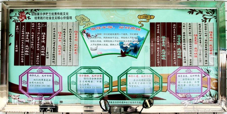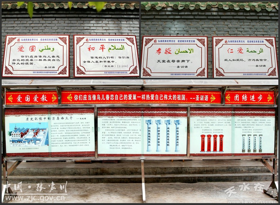 近年來(lái),張家川清真西大寺、中街清真寺始終堅(jiān)持伊斯蘭教中國(guó)化方向,在和諧宗教活動(dòng)場(chǎng)所創(chuàng)建工作中,緊密結(jié)合社會(huì)主義核心價(jià)值觀教育與伊斯蘭教優(yōu)秀文化傳承,精心制作了20個(gè)與“24字”方針相符合的宣傳牌,懸掛在寺院的醒目位置,宣傳引導(dǎo)廣大信教群眾樹(shù)立“像鳥(niǎo)兒眷戀自己的愛(ài)巢一樣熱愛(ài)自己偉大的祖國(guó)”的思想。同時(shí),在堅(jiān)持獨(dú)立自主自辦的基礎(chǔ)上,積極引導(dǎo)宗教與社會(huì)主義社會(huì)相適應(yīng),相繼建立并完善了《清真寺民主管理制度》、《寺管會(huì)工作制度》、《財(cái)產(chǎn)財(cái)務(wù)管理制度》等各項(xiàng)規(guī)章管理制度,為和諧宗教活動(dòng)場(chǎng)所創(chuàng)建奠定了堅(jiān)實(shí)基礎(chǔ)。兩處寺院先后多次被省市縣各級(jí)黨政組織評(píng)為“五好清真寺”、“精神文明示范點(diǎn)”、“ 和諧宗教活動(dòng)場(chǎng)所創(chuàng)建先進(jìn)集體”等榮譽(yù)。