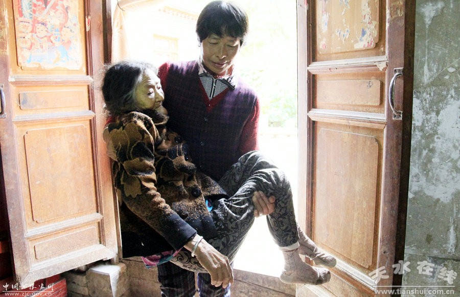 10年來(lái),婆婆的衣食起居,是王秋桃最掛念的事情,雖然婆婆已經(jīng)骨瘦如柴,不足70斤,但是每天都要上下炕好多次,難免要讓王秋桃出一身汗。臥床不起的日子讓老人精神上倍感寂寞,為了盡量讓婆婆過(guò)得舒心,除了每天做上可口的飯菜外,王秋桃還經(jīng)常講些村里聽(tīng)來(lái)的趣聞?shì)W事,邊做事邊陪老人聊天。閑暇之余,王秋桃還會(huì)背著婆婆到大門(mén)外面的打麥場(chǎng)散步,讓老人家呼吸一下新鮮空氣,看看藍(lán)藍(lán)的天空。