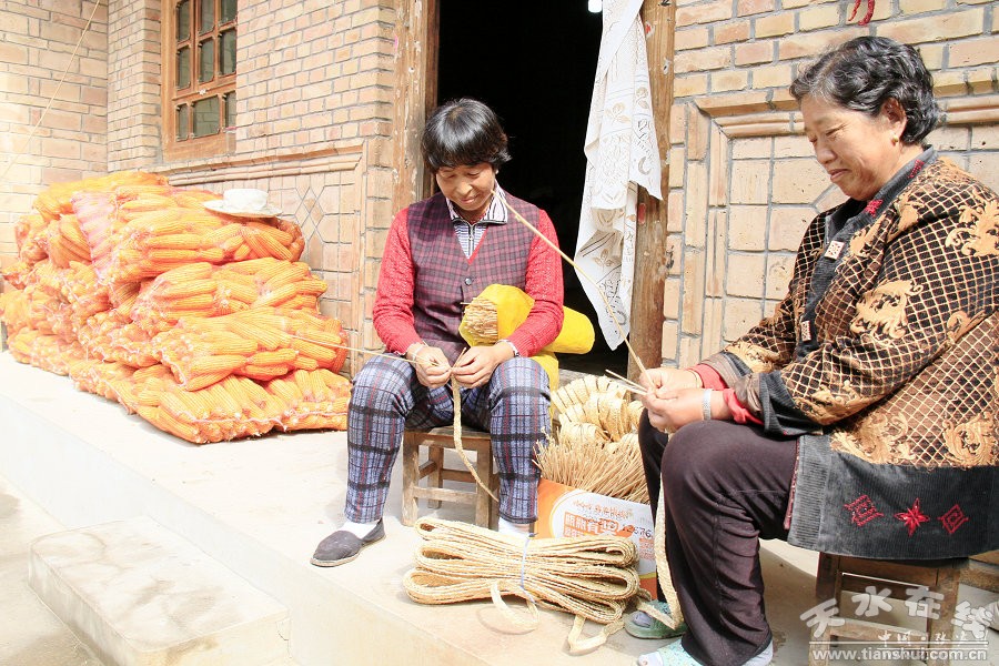 10月3日,張家川縣馬關(guān)鎮(zhèn)上豆村王秋桃和三娘李四花在院子里編草編聊天
