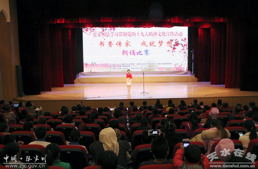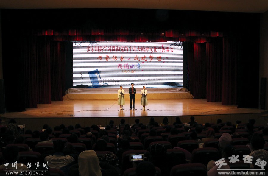 11月24日至25日,“書香傳家,成就夢想”經(jīng)典詩文朗誦比賽在張家川縣影視中心舉行?h委常委、宣傳部長薛林榮出席開幕式并致辭,副縣長汪萍及參賽人員和觀眾共400多人參加。