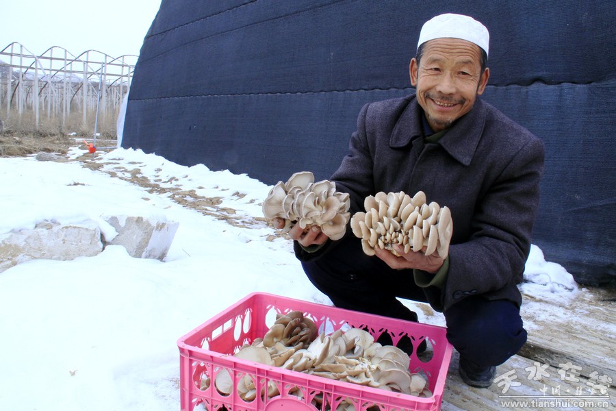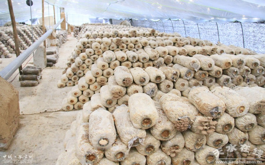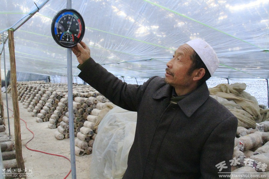 這些天降溫厲害,張家川縣木河鄉(xiāng)莊河村農(nóng)民馬驍為了讓自家蘑菇棚里的溫度能維持在10攝氏度以上,工作量比平日大了許多。走進(jìn)馬驍?shù)钠焦椒N植基地,大棚外是零下3攝氏度的低溫,大棚里溫暖如春,一排排架子上擺滿了已全部變白的平菇菌棒,菌棒外的塑料口袋齊刷刷地張口開著,一個個淺棕色拇指大小的平菇你爭我搶地冒了出來。