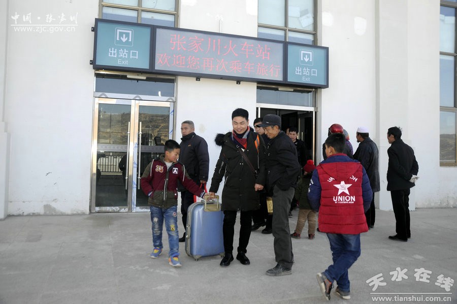 2月12日11時零5分,位于張家川縣恭門鎮(zhèn)付川村的張家川火車站傳來火車的鳴笛聲,從隴西方向到來的7504次列車到達張家川站。在出站口等侯多時的付川村青年付永偉的父親帶著兩個孫子終于接上了付永偉。面對筆者的鏡頭,拎著大包小包的付永偉高興地說,今年7月份就從網上看到家鄉(xiāng)通了火車了,這次從杭州坐火車到麥積再轉到張家川站,直接坐到家門口了,非常方便。