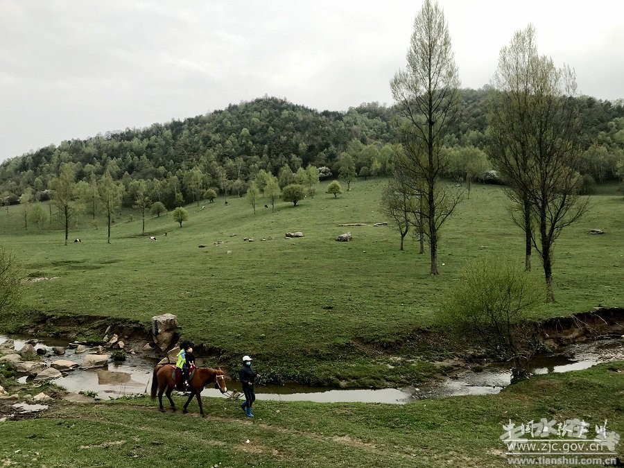 “五一”小長假,張家川縣馬鹿鎮(zhèn)境內(nèi)的關(guān)山云鳳山景區(qū)青草嫩綠,鮮花盛開,牛羊肥壯,吸引了大量游客前來旅游。4月30日,筆者在石槽溝草原發(fā)現(xiàn)有不少游客騎馬拍照。一位來自慶陽的游客對筆者說,張家川關(guān)山草原是真正原生態(tài)的,當(dāng)?shù)卣磥碓谧o(hù)林防火上下了功夫,他已是第二次來這里了。花園村一位姓王的村民告訴筆者,“五一”小長假的到來,預(yù)示著我們牧馬人旺季的生意來了。天氣好時,一匹馬收入二三百塊錢不成問題。現(xiàn)在我們這里有一百多匹馬,都是附近周邊村莊的。