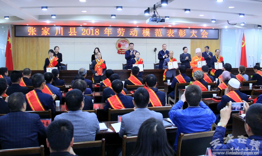 張家川縣2018年勞動(dòng)模范表彰大會(huì)上,李明被授予“張家川縣勞動(dòng)模范”榮譽(yù)稱號(hào)。(圖右一為李明)