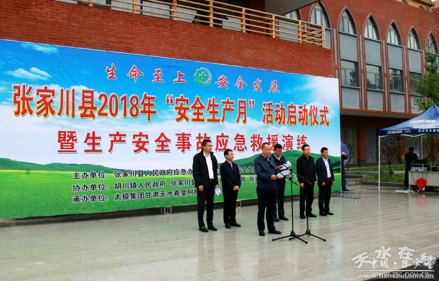 為全面貫徹落實(shí)習(xí)近平總書記提出的“生命至上、安全發(fā)展” 理念,提升防災(zāi)減災(zāi)救災(zāi)能力,6月1日上午,張家川縣啟動以“全面落實(shí)企業(yè)安全生產(chǎn)主體責(zé)任”為主題的第十七個“安全生產(chǎn)月”活動,開展了生產(chǎn)安全事故應(yīng)急救援演練?h委副書記、縣長馬筱寧出席啟動儀式并觀摩了應(yīng)急救援演練。
