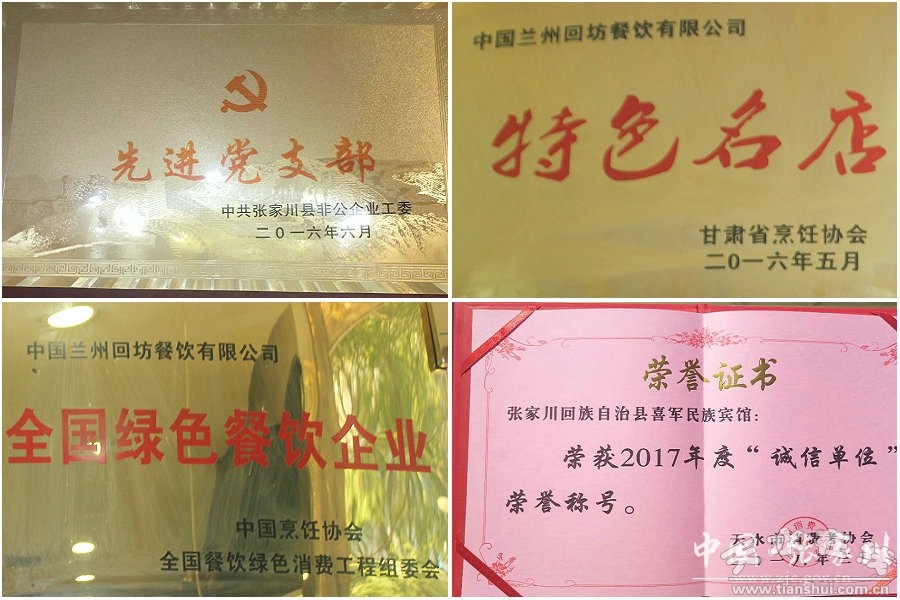 陜西回坊一歲羊餐飲管理有限公司創(chuàng)始人劉喜軍是張家川縣張家川鎮(zhèn)楊上村人,今年43歲,他是一名黨員,退役軍人,退伍后在縣醫(yī)藥公司上班,2002年下崗后自力更生,先后開(kāi)辦過(guò)摩托專賣店、民族賓館,投資入股愛(ài)家生活超市,如今他在陜西寶雞又勇闖餐飲商海。由于勤奮打拼,誠(chéng)信經(jīng)營(yíng),他的企業(yè)先后被張家川縣非公企業(yè)工委評(píng)選為“先進(jìn)黨支部”,被天水消費(fèi)者協(xié)會(huì)評(píng)選為2017年“誠(chéng)信單位”。