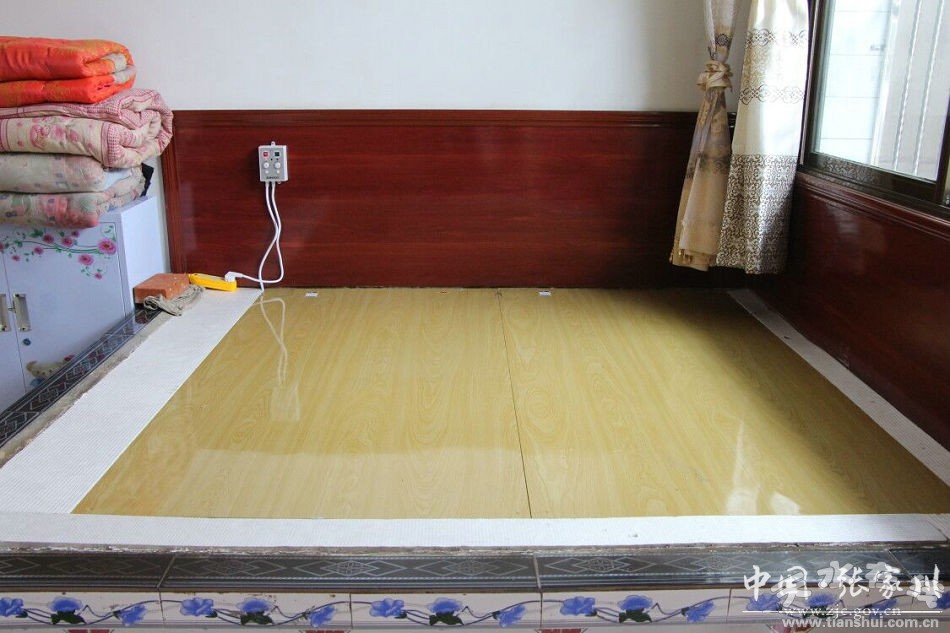 在前往參觀考察扶貧光伏項目和扶貧車間的路上,閆家鄉(xiāng)分管項目負責同志介紹,電熱炕是近年來流行的一種農(nóng)村取暖設施,從外觀來看與傳統(tǒng)土炕沒有太大區(qū)別,但發(fā)熱源上,電熱炕是由電來取暖,它一般由電熱板、溫控器、支撐面和地板革等四部分組成,實際使用時,用溫控器來控制電熱炕的溫度和使用時間,就跟電熱毯一樣,發(fā)熱迅速,溫度恒定,受熱面均勻,而且環(huán)保干凈,清潔衛(wèi)生,使用一整夜的費用還不到一元錢,達到了“兩省三安全”的效果,即省電,省心,人安全、電安全 、房安全。在農(nóng)村特別實用,現(xiàn)在有些城市人在裝修房子時,也使用電熱炕。