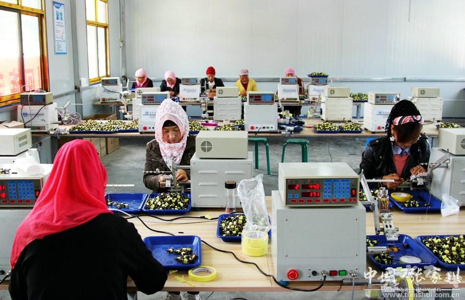什么樣的就業(yè)扶貧能兼顧田間的勞作和工廠車間的工作,還能照顧老人和孩子呢?日前,在張家川縣閆家鄉(xiāng)閆家村“扶貧車間”,20多名女工正埋頭忙碌著,她們分工有序,繞線、理線、焊錫、組裝、測(cè)試,所有流程一氣呵成,成型的電子產(chǎn)品經(jīng)過檢驗(yàn)包裝將運(yùn)往廣東省東莞市某電子公司。