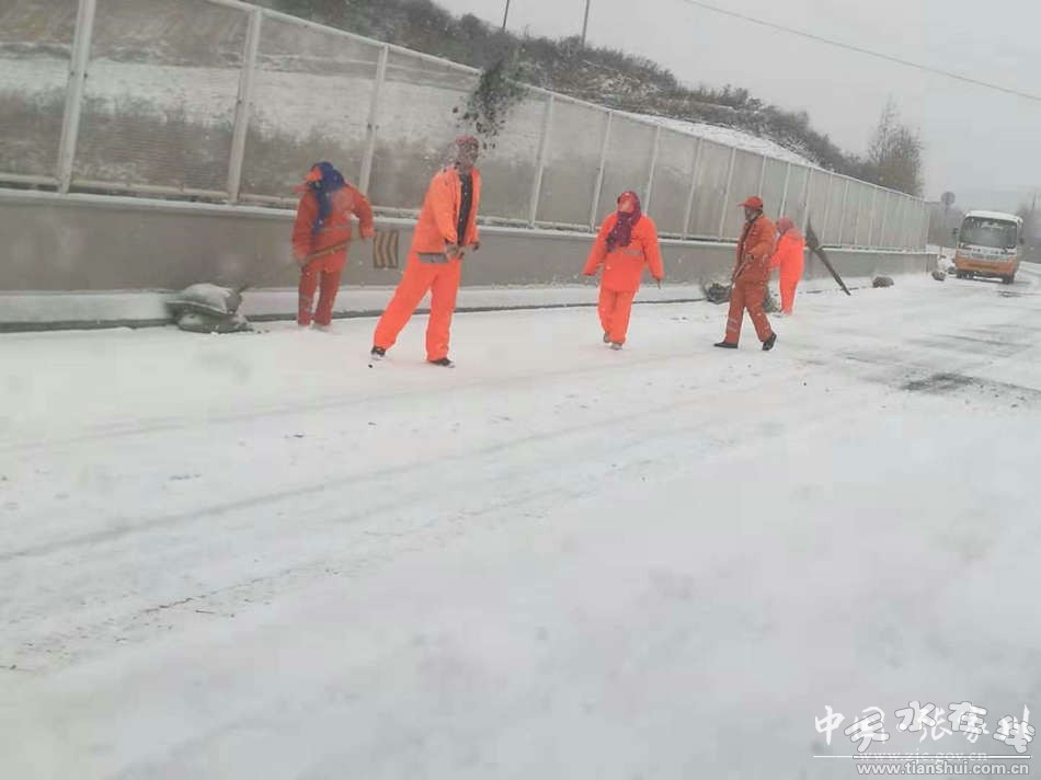 張家川公路管理段第一時間組織人員趕赴S305線莊天公路張棉驛段出動養(yǎng)路工22人、撒鹽車3臺,撒布融雪劑1.5噸、防滑料12立方米,全力保障養(yǎng)護(hù)路段的雨雪天氣安全暢通。