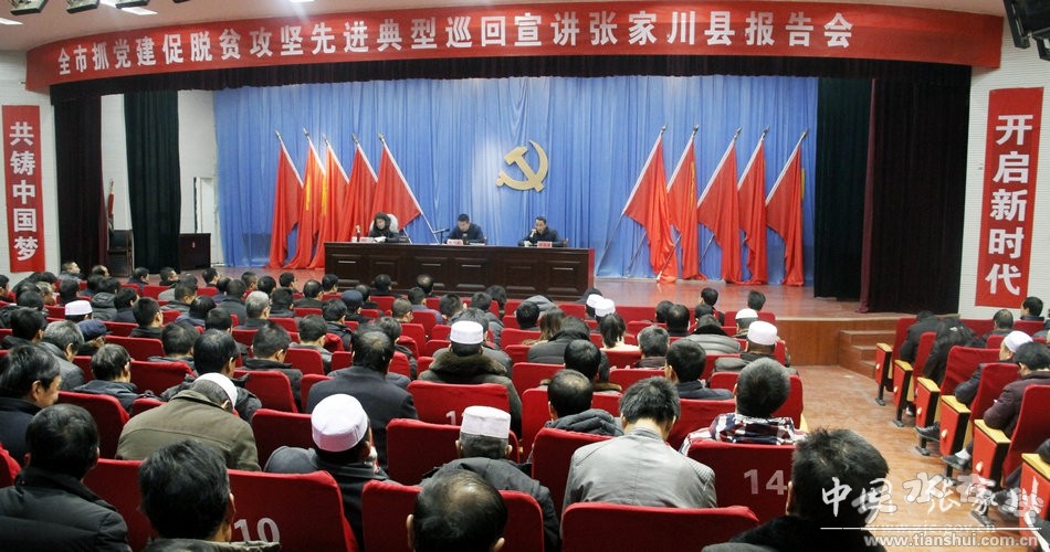 12月12日,全市抓黨建促脫貧攻堅(jiān)先進(jìn)典型巡回宣講報(bào)告會(huì)在張家川縣舉行?h委常委、組織部部長陳海龍主持報(bào)告會(huì)。各鄉(xiāng)鎮(zhèn)黨委書記、黨建辦主任,部分農(nóng)業(yè)合作組織負(fù)責(zé)人,縣脫貧攻堅(jiān)領(lǐng)導(dǎo)小組成員單位負(fù)責(zé)人,全縣貧困村黨組織書記,貧困村第一書記參加會(huì)議。