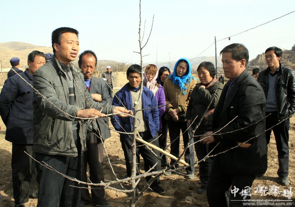 2013年春季,馬河栽植建設(shè)千畝蘋果標(biāo)準(zhǔn)化示范園,這是張家川縣首家引進(jìn)外地客商通過土地流轉(zhuǎn)建設(shè)的規(guī)模化果品基地。作為果樹站負(fù)責(zé)人,他著手高標(biāo)準(zhǔn),認(rèn)真把好基地建設(shè)技術(shù)關(guān)口,從前期土地流轉(zhuǎn),園地規(guī)劃設(shè)計(jì),到栽植、澆水、定干,他帶領(lǐng)站上技術(shù)骨干堅(jiān)持在現(xiàn)場指導(dǎo),在栽植的關(guān)鍵階段,他協(xié)調(diào)解決灌溉設(shè)備、地膜覆蓋等問題,還帶領(lǐng)技術(shù)干部親手修剪定干,親自動手操作示范,使果園承包商十分感動,對投資張家川建果園有了更大的信心。