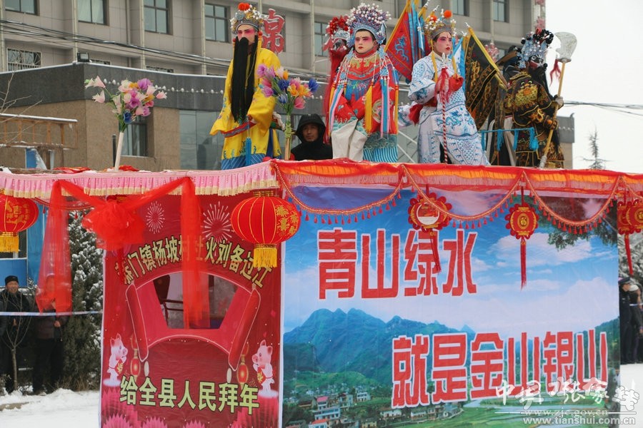 在當(dāng)天的社火表演活動(dòng)中,“打贏脫貧攻堅(jiān)戰(zhàn)、全面建成小康社會(huì)、鄉(xiāng)村振興、綠水青山就是金山銀山、掃黑除惡、抵制高價(jià)彩禮”等政策性宣傳標(biāo)語(yǔ)融入到社火表演中,縣人武部組織的各鄉(xiāng)鎮(zhèn)征兵宣傳彩車也是一個(gè)亮點(diǎn),還有一些農(nóng)民合作社、商家也借此開(kāi)展宣傳活動(dòng)。