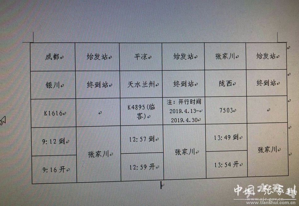具體為:平?jīng)觯m州K4898/5次列車,張家川站12時(shí)57到,12時(shí)59開。平?jīng)?0時(shí)20分開,沿途?堪部凇埣掖、清水、天水、隴西站,17時(shí)56分到達(dá)蘭州。成都一銀川K1616次列車,張家川站9時(shí)12到,9時(shí)16開,張家川—隴西7503次列車,張家川站13時(shí)49到,13時(shí)54開。