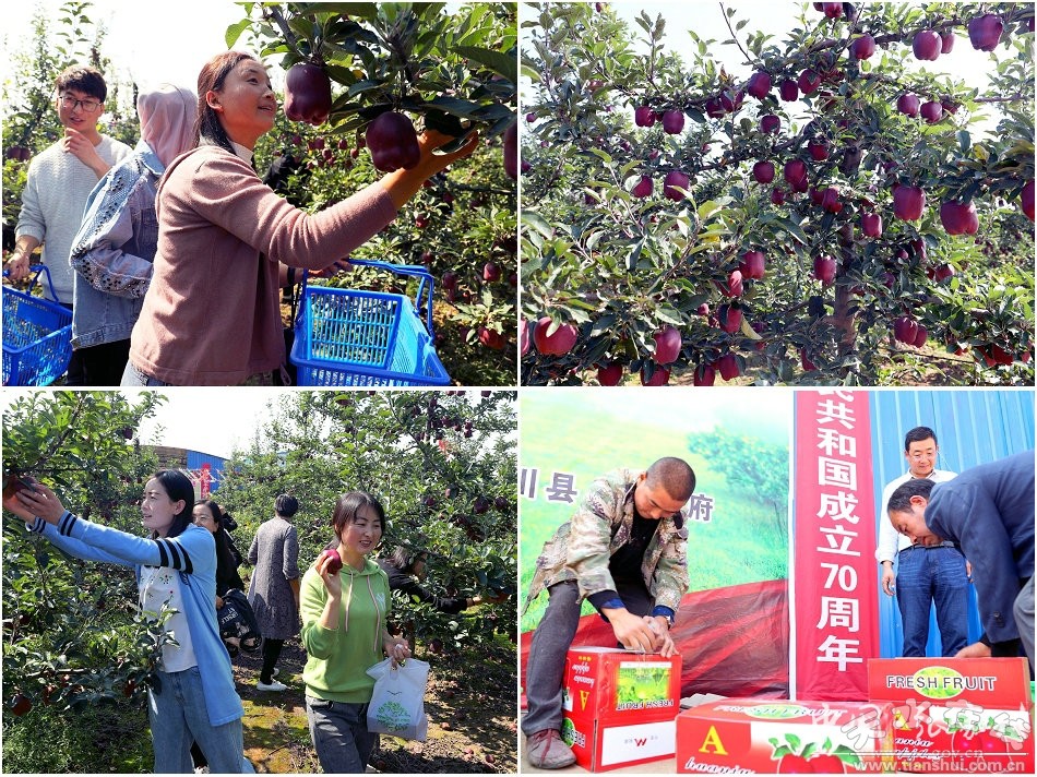 在不遠(yuǎn)處的成片果園里,現(xiàn)場(chǎng)體驗(yàn)采摘的客人絡(luò)繹不絕,采摘的蘋果筐筐上稱,現(xiàn)場(chǎng)訂購(gòu)、裝袋一氣呵成。張家川縣2019年“中國(guó)農(nóng)民豐收節(jié)”慶祝活動(dòng),帶給張繼榮她(他)們的,不僅僅是喜悅和體驗(yàn),而是實(shí)實(shí)在在的收獲……