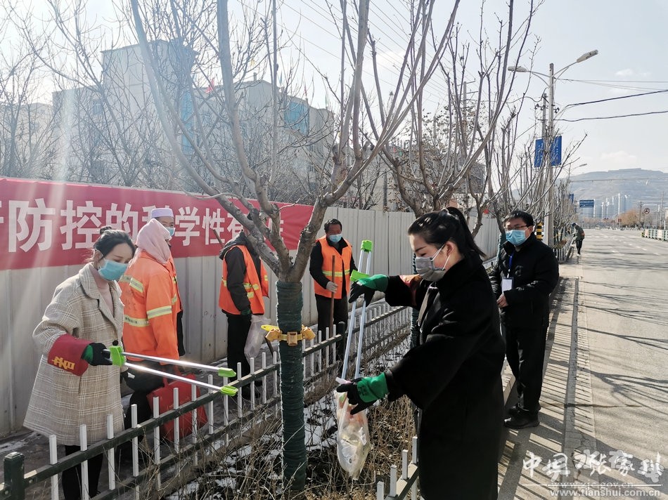 按照上級團組織的要求,團縣委成立了張家川縣疫情防控青年志愿者分隊,共招募各行各業(yè)青年志愿者81人,于2月4日立春當天下午,利用一下午的時間,采取分散進行、徹底清理的方式,對整條阿陽大道兩旁的綠化帶在噴霧消殺之后進行全面清理,并對個別行人不戴口罩外出行為進行了勸解,對亂扔雜物、隨地吐痰等骯臟行為在微信公眾號發(fā)出嚴禁各類危害環(huán)境和人民健康的丑陋行為的倡議并號召廣大團干及青年志愿者廣泛轉(zhuǎn)發(fā)宣傳,這有效地清除了視覺污染,防范了路人的傳染風險,為共建清潔文明張家川增添了青春力量。