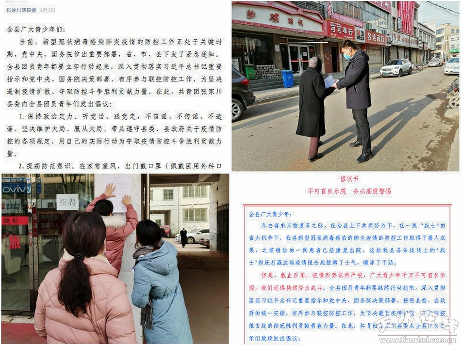 團縣委負責人說,我們團縣委積極引導廣大團員青年和志愿者做黨委、政府各項決策部署忠誠的“執(zhí)行者”,做美好家園堅定的“守護者”,做權(quán)威信息科學的“傳播者”。自1月26日以來,線上用“張家川團縣委微信公眾號”向全縣團員青年發(fā)起《防控疫情倡議書》,動員全縣各級團組織和團員青年積極有序參與防控工作,同時于1月29日組織成立“張家川縣青年防疫志愿服務(wù)隊”,號召返鄉(xiāng)大學生到社區(qū)報到組建青年突擊隊、青年志愿者聯(lián)盟,幫助社區(qū)做好疫情防控工作。