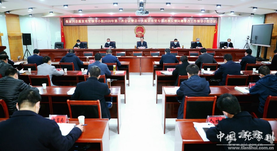 3月13日上午,縣委書記、縣脫貧攻堅(jiān)領(lǐng)導(dǎo)小組組長(zhǎng)陳晰主持召開張家川縣脫貧攻堅(jiān)領(lǐng)導(dǎo)小組2020年第三次會(huì)議暨縣中央脫貧攻堅(jiān)專項(xiàng)巡視反饋問題整改工作領(lǐng)導(dǎo)小組會(huì)議,深入學(xué)習(xí)習(xí)近平總書記在決戰(zhàn)決勝脫貧攻堅(jiān)座談會(huì)、統(tǒng)籌推進(jìn)新冠肺炎疫情防控和經(jīng)濟(jì)社會(huì)發(fā)展工作部署會(huì)議以及湖北省考察新冠肺炎疫情防控工作時(shí)的重要講話精神,傳達(dá)學(xué)習(xí)中央和省、市有關(guān)會(huì)議文件精神,提出我縣貫徹落實(shí)意見。研究審定了《張家川縣2020年天津市市級(jí)幫扶資金項(xiàng)目安排意見》、張家川縣東西部扶貧協(xié)作和中央單位定點(diǎn)扶貧11 個(gè)《專項(xiàng)工作實(shí)施方案》以及《關(guān)于應(yīng)對(duì)新冠肺炎疫情影響加強(qiáng)財(cái)政專項(xiàng)扶貧資金項(xiàng)目管理的實(shí)施細(xì)則》《張家川縣涉農(nóng)整合資金安排產(chǎn)業(yè)配套基礎(chǔ)設(shè)施項(xiàng)目資金意見》等事宜。