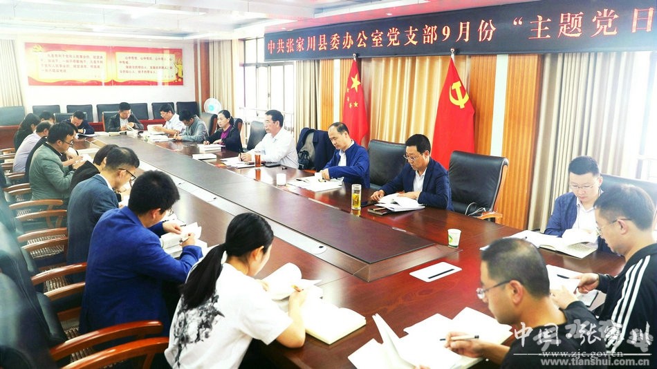 9月8日上午,中共張家川縣委辦公室黨支部開展2020年9月份“主題黨日”活動,集體學(xué)習(xí)《習(xí)近平談治國理政》(第三卷)部分章節(jié),重溫學(xué)習(xí)習(xí)近平總書記對甘肅重要講話和指示精神,4名同志作了交流發(fā)言?h委書記陳晰,縣委副書記徐志強,縣委常委蘇紅娟參加“主題黨日”。