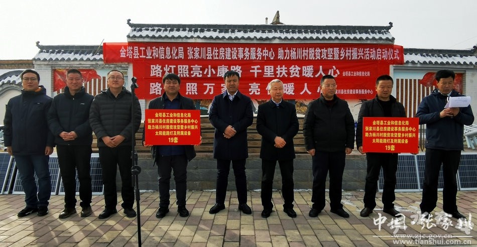 12月18日下午,金塔縣工信局“路燈照亮小康路·千里扶貧暖人心”助力楊川村脫貧攻堅暨鄉(xiāng)村振興活動啟動儀式在張家川縣楊川村舉行。金塔縣政協(xié)副主席、金塔縣調派張家川縣駐村幫扶工作隊總隊長殷希奎,張家川鎮(zhèn)、張家川縣住房建設事務服務中心等幫扶單位主要負責同志,楊川村兩委班子、駐村幫扶工作隊全體成員,部分群眾代表參加捐贈儀式。