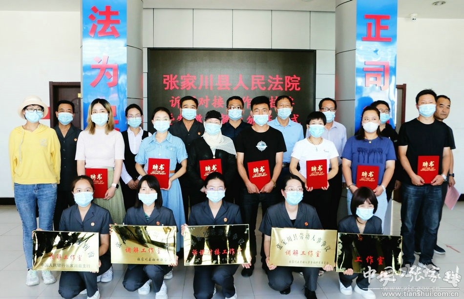 為進(jìn)一步推進(jìn)縣級(jí)層面訴調(diào)對(duì)接工作實(shí)質(zhì)化運(yùn)行,完善各類調(diào)解聯(lián)動(dòng)工作體系,8月20日下午,在縣人民法院舉行了張家川縣訴調(diào)對(duì)接工作室掛牌儀式。縣法院、縣司法局、縣人社局、縣總工會(huì)、縣婦聯(lián)、人行張家川縣支行等部門負(fù)責(zé)同志參加了掛牌儀式。