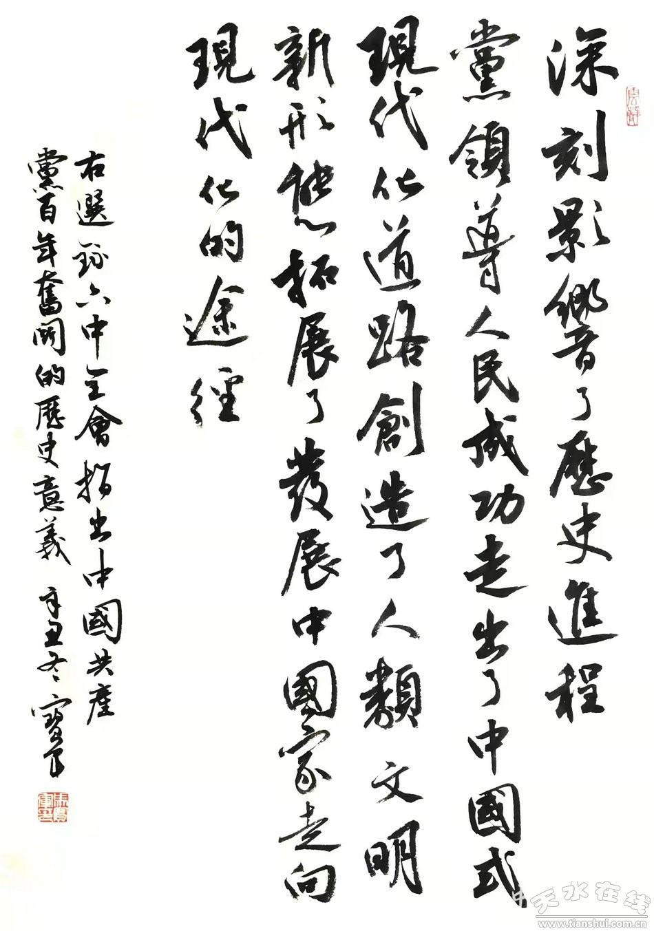 為深入學習貫徹黨的十九屆六中全會精神,全面系統(tǒng)學習領(lǐng)會全會精神的豐富內(nèi)涵與核心要義,牢牢把握正確方向?qū)颍嬲宫F(xiàn)黨的百年奮斗重大成就和歷史經(jīng)驗,張家川縣新時代文明實踐文藝志愿者為宣傳和闡釋黨的十九屆六中全會精神,精心創(chuàng)作出一系列文藝書畫作品,進一步豐富活躍群眾文化生活。