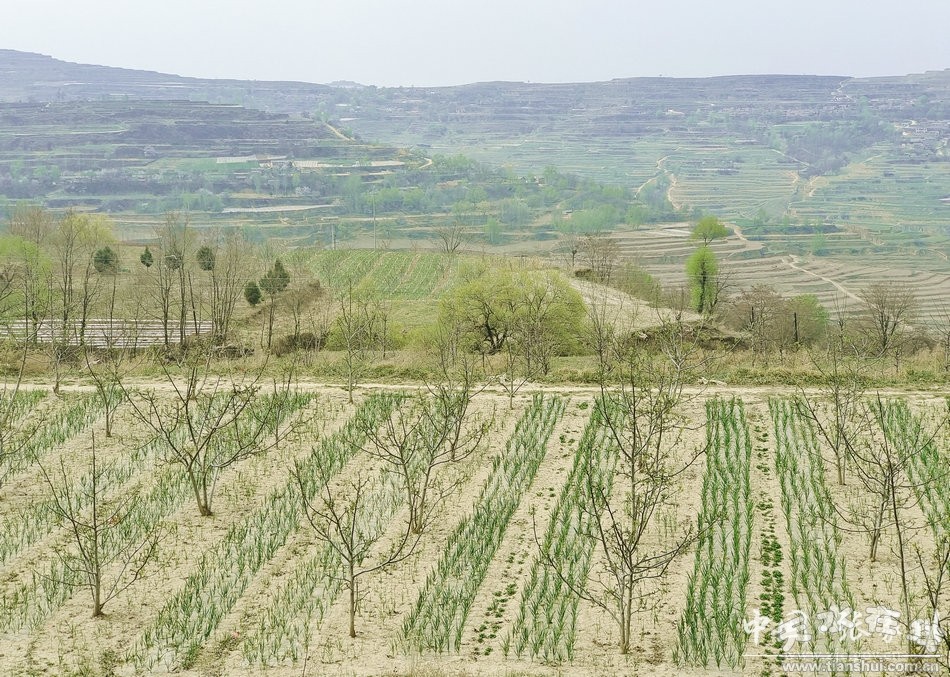 “昔日看山愁白頭,今日眺望滿山金!弊哌M(jìn)張家川縣梁山鎮(zhèn)陽(yáng)洼村,綠綠的大蒜苗、金黃的油菜花、一串串的核桃樹(shù)花和即將綻放的蘋(píng)果樹(shù)花構(gòu)成了春日里最美好的田園畫(huà)卷。