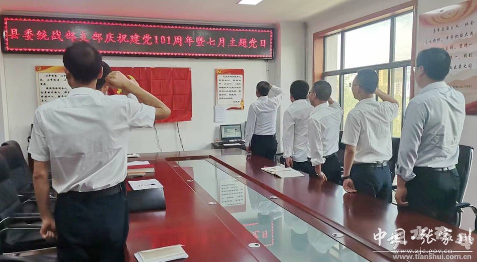 “中國共產(chǎn)黨,是中國工人階級的先鋒隊,同時是中國人民和中華民族的先鋒隊,是中國特色社會主義事業(yè)的領(lǐng)導(dǎo)核心……”隨著黨支部書記的領(lǐng)讀,全體黨員一字一句認真誦讀《黨章》總綱。全體黨員一致表示,將以黨的百年奮斗歷程激勵自身,傳承紅色基因、牢記初心使命,把對黨的無限忠誠轉(zhuǎn)化為勇?lián)姑膹姶髣恿,努力推動全縣統(tǒng)戰(zhàn)工作實現(xiàn)新提升,以實際行動迎接黨的二十大勝利召開。