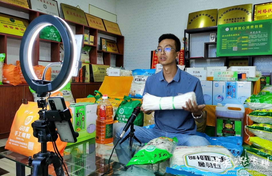 “伊真香手工土豆粉,入口柔軟有彈性、嚼勁十足,讓你吃出地道的家鄉(xiāng)味道。”7月16日,記者走進(jìn)張家川縣伊真香淀粉制品有限公司,采訪鄉(xiāng)土人才楊靖時(shí),他正通過手機(jī)直播的方式向屏幕前的顧客介紹著自家的產(chǎn)品。