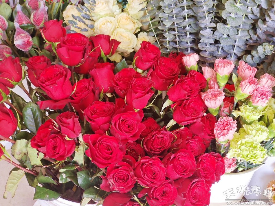 走進相約花藝店,店主鳥紅梅正在打包一個99朵玫瑰的訂婚花束。她說,現(xiàn)在生活條件好了,年輕人訂婚、結(jié)婚都用鮮花了。十年前結(jié)婚的手捧花都是假花,因為張家川買不到鮮花,F(xiàn)在店里有各種各樣的花,賣得最好的就是玫瑰花了,寓意好,打包出來也洋氣。