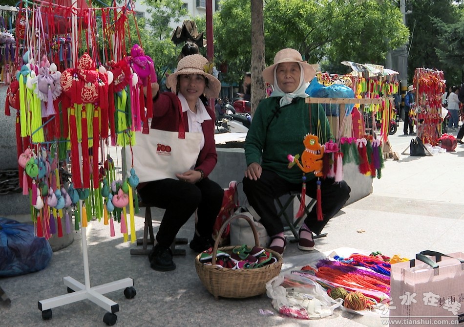 在一旁的荷包攤主劉江娥的荷包分外耀眼,她純手工縫制的荷包造型獨(dú)特、古樸自然、簡(jiǎn)約大方充滿了生活情趣。她非常開心地向記者介紹她制作荷包的材料和過(guò)程,她說(shuō):“插楊柳、綁花線、戴荷包,一直是老傳統(tǒng),從小的時(shí)候就喜歡做這個(gè)東西,每到端午節(jié),就不由自主地做起來(lái)了。