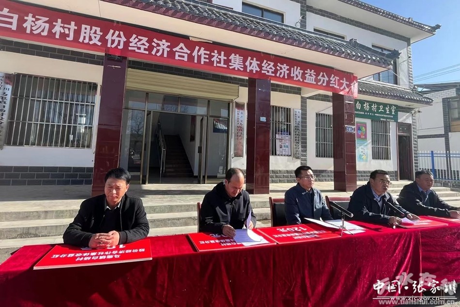 11月16日,張家川縣馬鹿鎮(zhèn)白楊村舉行村集體經(jīng)濟分紅儀式?h政府副縣長、縣公安局局長楊濤鋒參加分紅儀式。