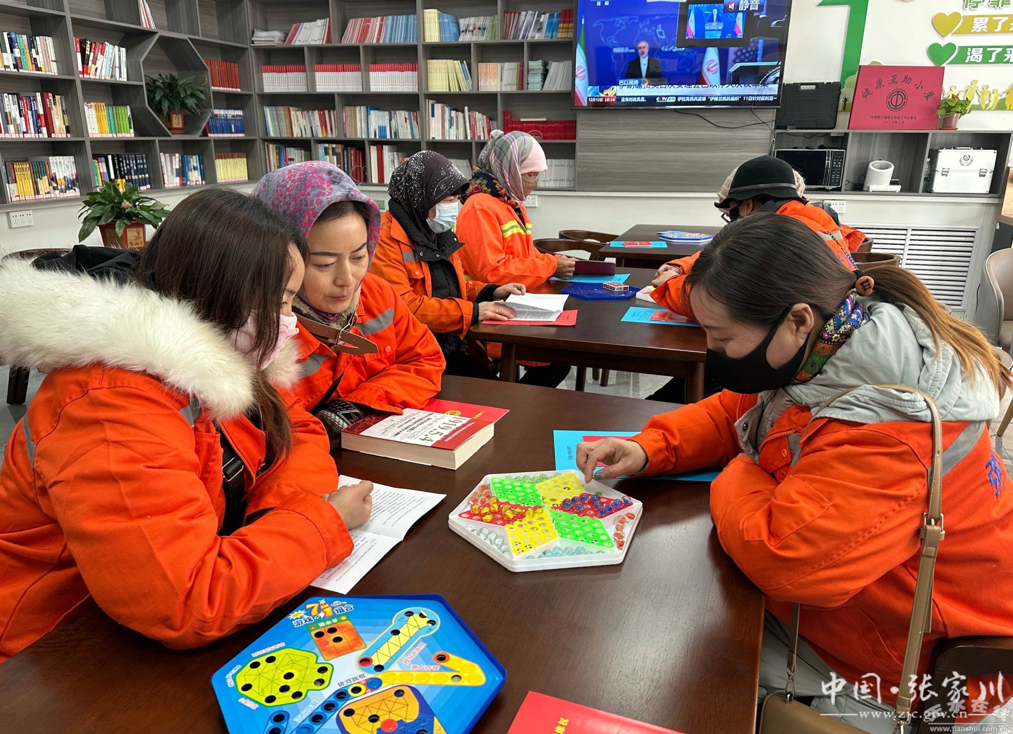 縣風(fēng)情園環(huán)衛(wèi)工人馬冬梅和同事們辛苦勞作的間歇,時(shí)常來這里歇腳!捌綍r(shí)我們隨時(shí)可以進(jìn)來休息娛樂一下,看會(huì)書或者玩會(huì)游戲,給手機(jī)充充電,給我們帶來很大的便利!