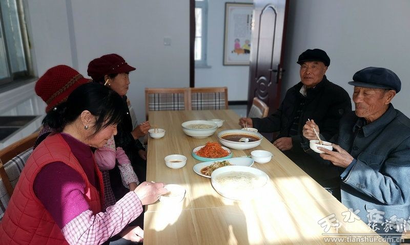 每天中午12時左右,張家川縣恭門鎮(zhèn)付川村的老人們,都會拿著飯盒到村級幸福院去吃飯。食堂里菜品齊全,老人們在這里不僅能吃到香噴噴的飯菜和花樣主食,還可以跟老哥們兒老姐們兒聊聊天,成為一天中最快樂的時光。