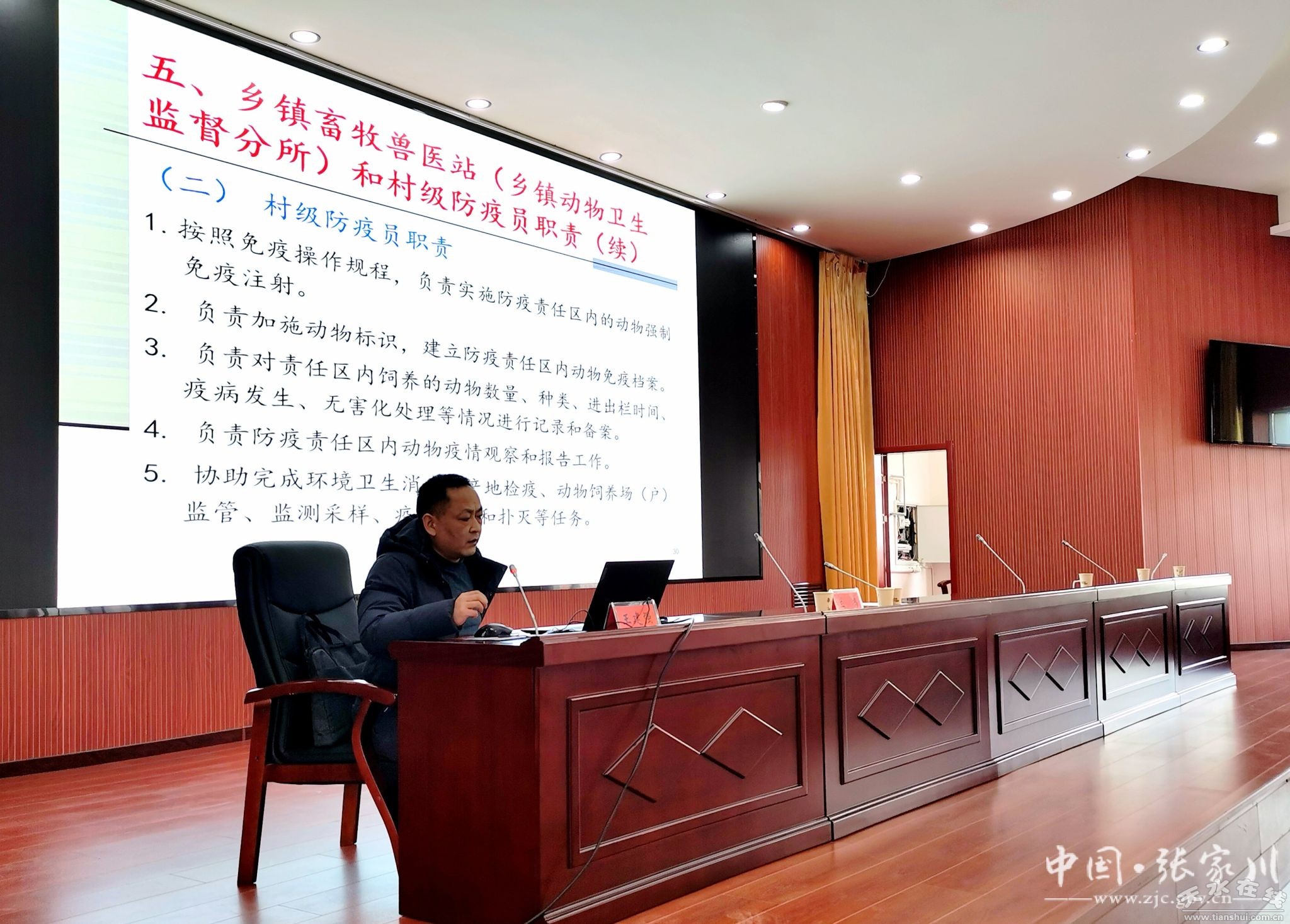 會議解讀了《中華人民共和國畜牧法》《中華人民共和國動物防疫法》《動物檢疫管理辦法》及2024年全縣畜牧產(chǎn)業(yè)發(fā)展有關(guān)獎補(bǔ)政策;邀請市動物疫控中心主任王建強(qiáng)、高級獸醫(yī)師汪紅琴及市畜牧局質(zhì)檢科張澤巖分別就系統(tǒng)動物免疫接種及疫苗基礎(chǔ)知識、動物的保定技術(shù)、檢疫無紙化出證、獸醫(yī)消毒技術(shù)等方面進(jìn)行了業(yè)務(wù)技術(shù)培訓(xùn)講解。會后,組織255個村級防疫員進(jìn)行了上崗考試,并對考試合格者發(fā)放了防疫員上崗證。