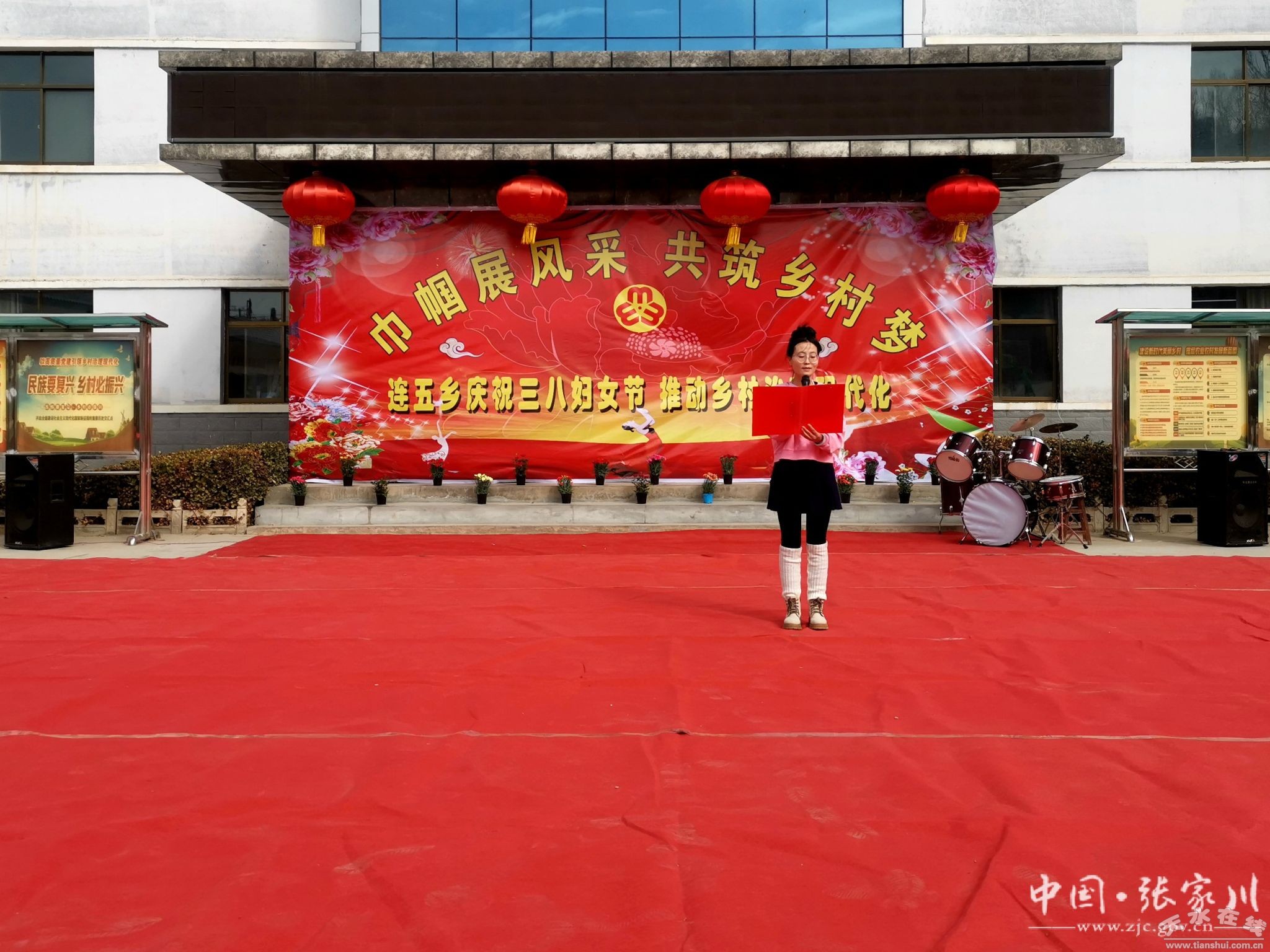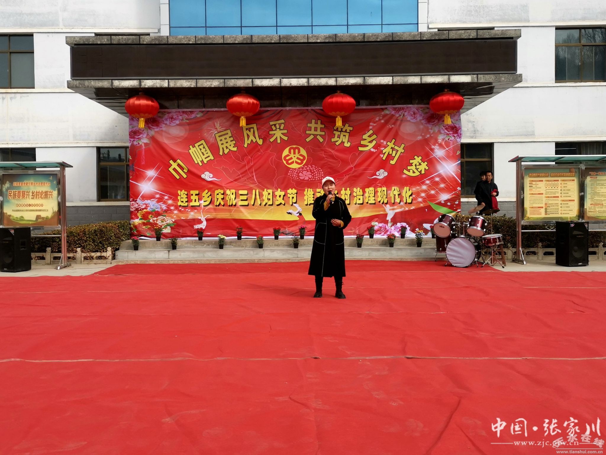 “三八婦女節(jié)是我們廣大婦女同志的節(jié)日,也是我最高興的一天,今天能站在連五鄉(xiāng)的舞臺(tái)上為大家表演、給大家?guī)g樂(lè)我真的挺開心的!眳⒓颖硌菡呃钚←愓f(shuō)道。